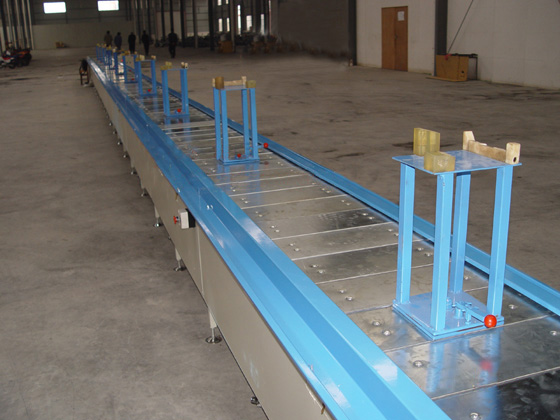 生產(chǎn)線裝配流水線采用DQ912鋁合金型材作導(dǎo)軌,以三倍速鏈條為傳輸介質(zhì),電動、氣動控制相結(jié)合,整體運(yùn)行處于相對自由節(jié)拍狀態(tài),廣泛應(yīng)用于水泵、電視機(jī)、顯示器、儀器儀表、空調(diào)、燃?xì)庠罹?、汽車摩托車配件、碎紙機(jī)等產(chǎn)品的生產(chǎn)裝配、調(diào)試及檢測作業(yè)。同時可與提升機(jī)或懸掛線、自動搬運(yùn)機(jī)械手組成立體交叉的循環(huán)生產(chǎn)系統(tǒng);
